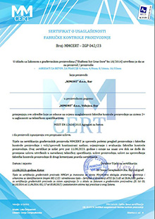 In order to maintain and improve the quality of goods and services, we have adopted the ISO 9001:2015 standard, and the certificate of adoption of standards has been issued to us by SGS. Our products are in compliance with the directives of the European Union, enabling us to label them with the CE mark and to market them on demanding European markets upon request.